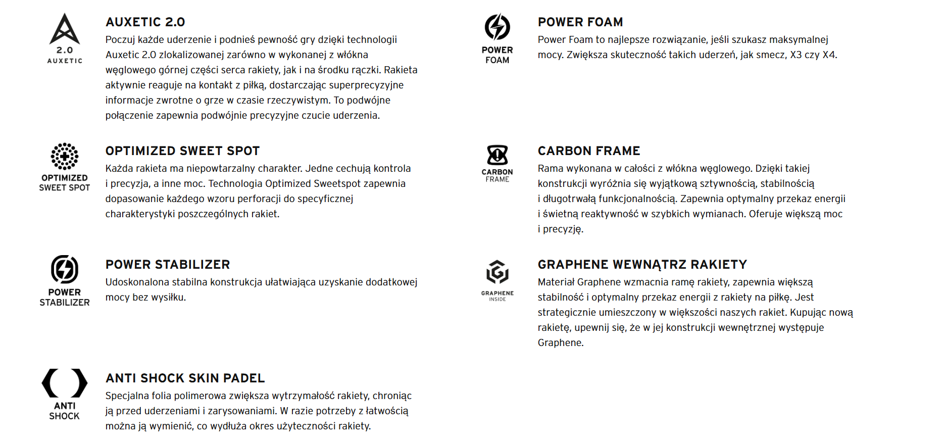 • Technologia Auxetic 2.0 – zaawansowane czucie piłki i mocniejsze uderzenia