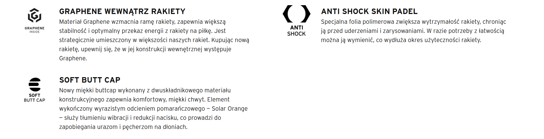 Zastosowana technologia Auxetic zapewnia większą moc i fantastyczne czucie piłki, a Soft Butt Cap – nowość w tym modelu – redukuje wibracje i poprawia komfort gry. Hybrydowa powierzchnia główki z mieszanki włókien zwiększa precyzję i kontrolę nad piłką, a technologia Extreme Spin umożliwia grę z mocną rotacją. Nowoczesne wzornictwo premium w żywych kolorach dodaje rakiecie wyrazistego, sportowego stylu.
